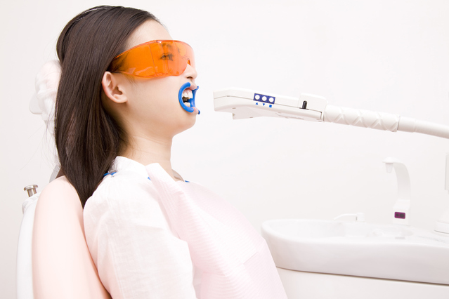- 専用のホワイトニング剤(分割ポリリン酸等)を歯の表面に塗布し、特殊な光を照射して歯を白くする方法です。